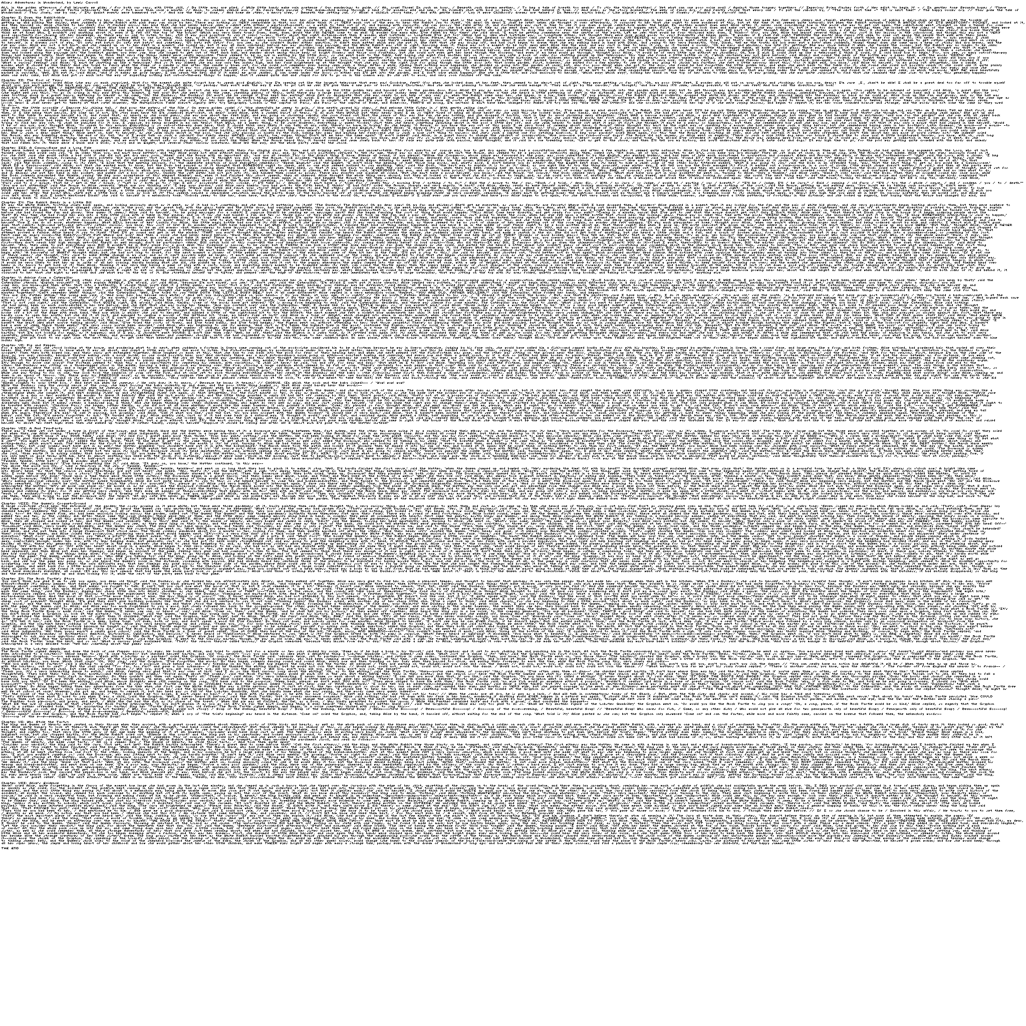 If you like rabbit holes, I also thought it would fun to put all of Alice in Wonderland (27,000 words, 144,000 characters) onto a 2048x2048 PNG image so that people could use it as a texture on walls somewhere.