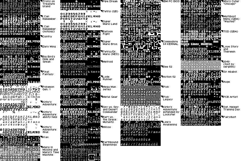 The compressed font table image though, might be something to consider turning it into though. Most consoles (NES, Gameboy, SMS, GG, SNES, Genesis, ect..) use that sub-segment of the ASCII table as a basic font input. Examples below.